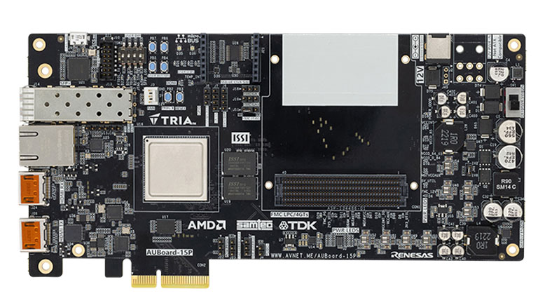 The AUBoard 15P provides the flexibility and versatility for engineers to experiment with and learn the AMD Artix™ UltraScale+™ architecture. The feature rich AU15P device features 170K programmable logic cells and 12 GTH multi-gigabit transceivers as well as 576 DSP slices and 7.6 Mb of on-chip RAM. The board also features 2GB of ISSI DDR4 and non-volatile configuration and boot from the 512Mb of ISSI QSPI Flash. A Microchip PHY enables the 10/100 Ethernet interface. A microUSB port provides on-board JTAG/UART access. A Renesas clock generator and ECS crystal oscillators provide clocking to the AU15P device, GTH transceivers, JTAG, and communication interfaces. All 12 GTH transceivers are brought out to SFP+ 10 GbE Ethernet (1), HDMI 2.0 Rx & Tx (3), and PCIe end point (4) interfaces and FMC (4) I/O expansion. A combination of slide switches, push buttons, and LEDs (red and RGB) allow user interaction with the board. A temperature sensor from STMicroelectronics adds environmental data to the system. Additionally, 80 FPGA I/Os are exposed through the Samtec connectors for FMC LPC high-speed expansion and one Click Board™ site. The board is powered from a 60W power supply and Renesas and TDK power devices. Whether you want to explore bare metal, RTOS, or Linux software, the AUBoard 15P will give you a solid base foundation to experiment.