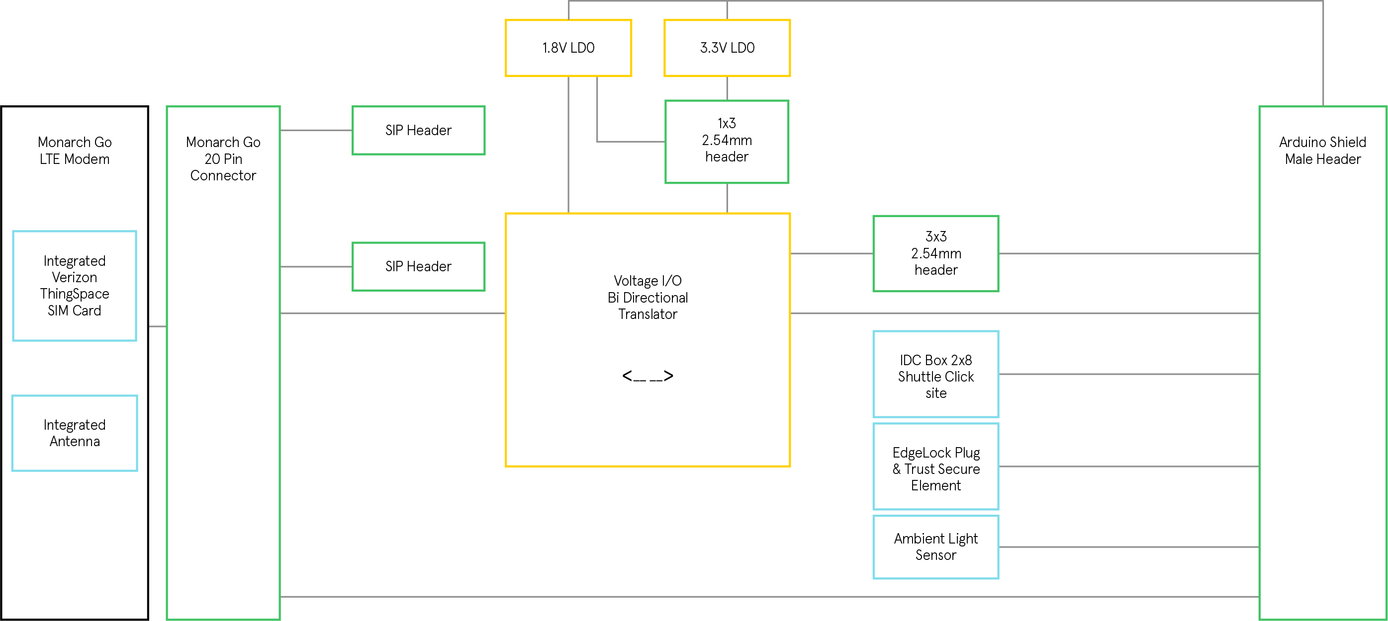 The Monarch Go Arduino Shield is a cellular IoT enablement platform featuring the Sequans Monarch Go modem. This shield is an ideal starting point for LTE IoT application development. The production-certified Monarch Go modem is end application certified allowing for easy transition from development to production.