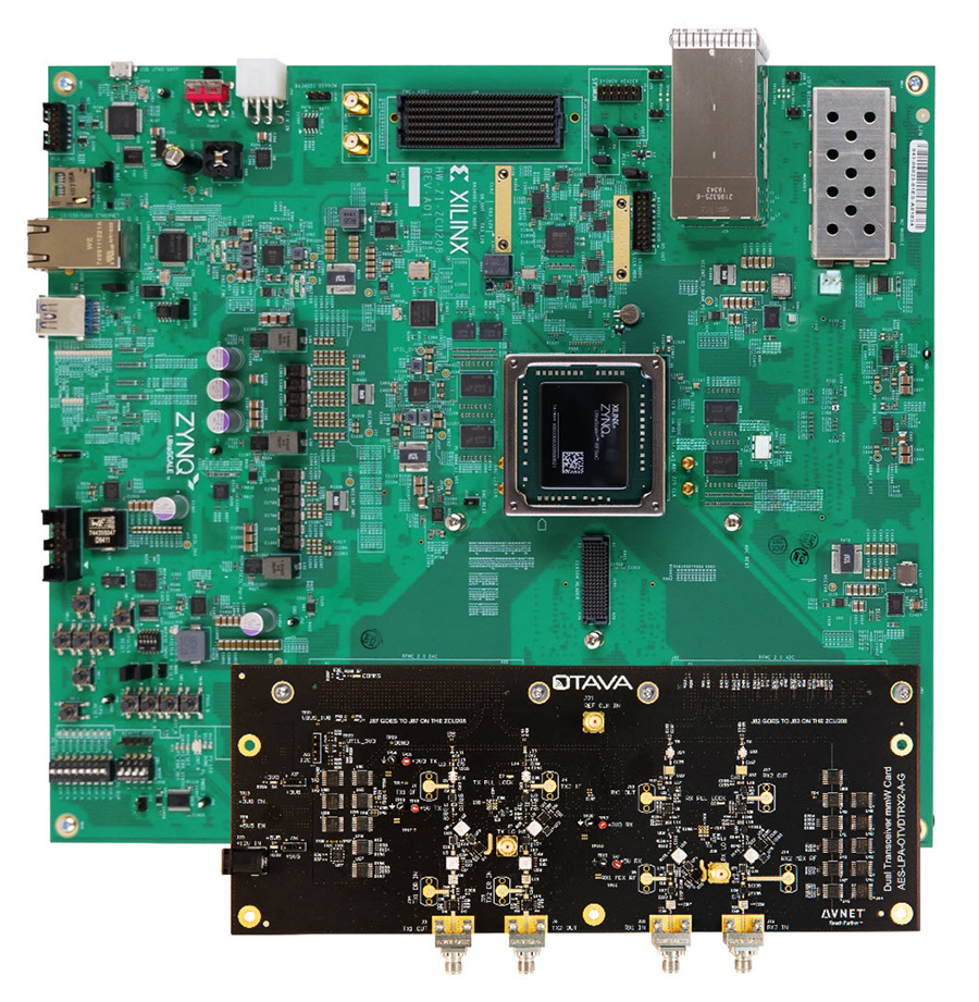 The Avnet Wideband mmWave Radio Development Platform for RFSoC Gen-3 is ideal for prototyping RF applications in mmW bands including 5G NR FR2, wireless backhaul, as well as K/Ka band radar and SATCOM. This platform combines the Otava DTRX2 Dual Transceiver mmWave Radio Card – jointly developed by Otava and Avnet – with the AMD Xilinx Zynq® UltraScale+ ™ RFSoC ZCU208 Evaluation Kit.