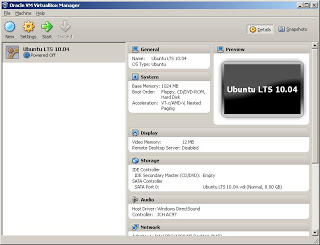 Now we need to add to the VM the Ubuntu ISO image so that we can install our OS. This is pretty simple. First, make sure your VM is selected in the left list-o-VM's and click the Settings button (next to the New button) in the upper left. From there you will see a new window. On the left side there is a list of things to configure, find the "Storage" item and click on it.