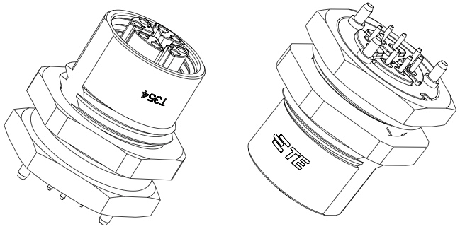 Figure 1. Today's M8/M12 interconnect solutions combine high performance and robust construction, while enabling easy installation in the field or during manufacturing. Simple soldered to a printed-circuit board, this M12 X-code shielded component mates tightly with a complementary M12 cable assembly in the factory to provide a dustproof, water-resistant connection able to support reliable 1Gbps operation in harsh industrial environments. (Source: TE Connectivity)