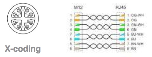 A more recent coding, X-code, addresses the growing need for an industrial connector compatible with CAT6A speeds. X-code connectors support high-bandwidth communication up to 10 Gbps using four twisted pairs compatible with conventional RJ45 connectors (Figure 4). With the availability of X-code, industrial data communications engineers can deploy advanced, high-speed Ethernet-compatible networks in even the most demanding manufacturing facility.