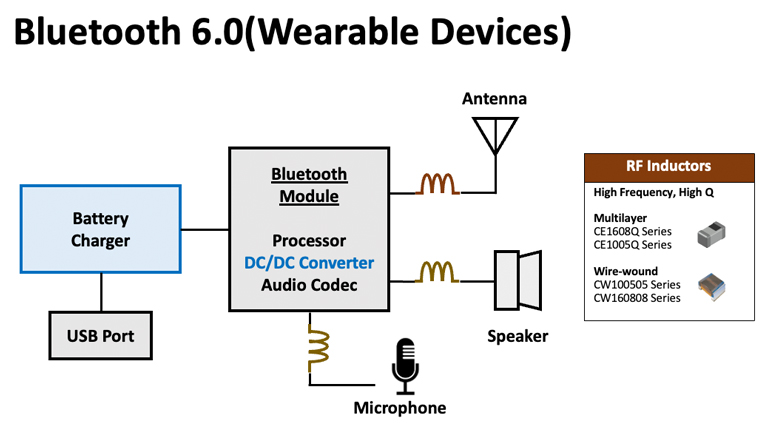 Block diagram of Bourns RF inductors used in Bluetooth 6.0 for wearable devices