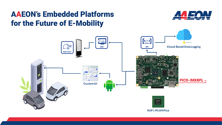 AAEON delivers an agile and scalable edge computing solution for E-mobility stations with its PICO-IMX8PL platform, built on the powerful and efficient NXP i.MX 8M Plus processor.