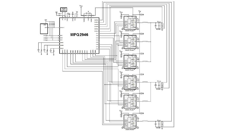 MPQ2946 - 具有三条电源轨的数字8 相控制器