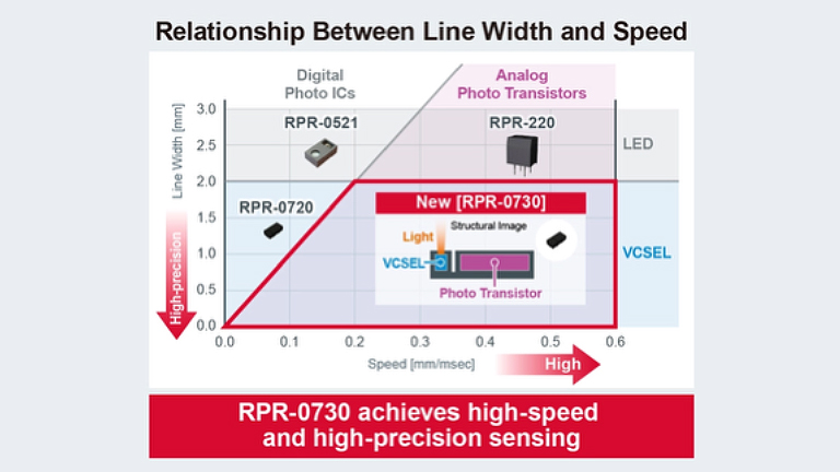 With ultra-fast 0.2ms response and 0.1mm precision, the RPR-0730 enables reliable proximity sensing in compact consumer devices such as printers, as well as in industrial automation equipment.