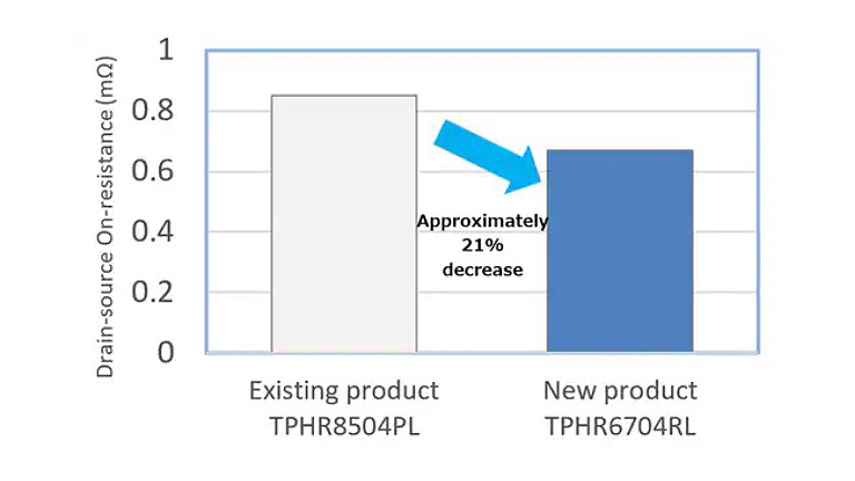 • Reduced drain-source On-resistance by approximately 21% compared to Toshiba's existing product