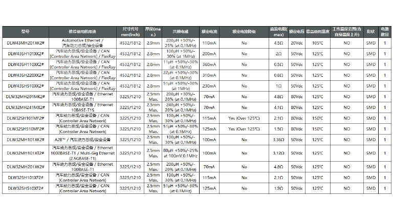 村田共模扼流线圈 DLW32/43系列,推荐使用于汽车电子控制单元(ECUs)
