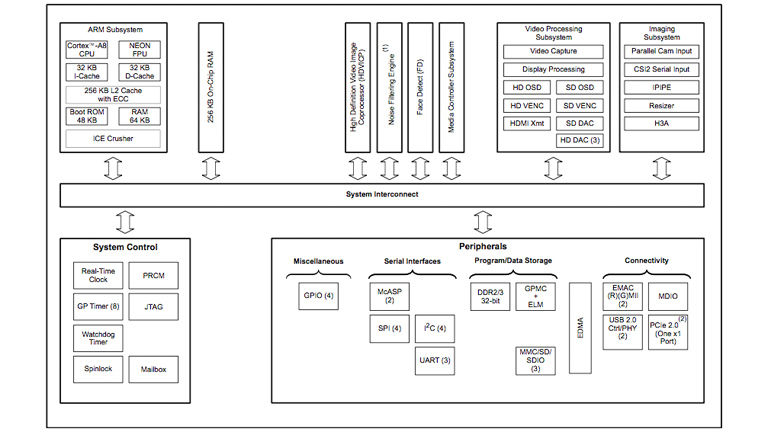 - Image Pipe Interface (IPIPEIF) for Image and Video Data Connection Between Camera Sensor, ISIF, IPIPE, and DRAM