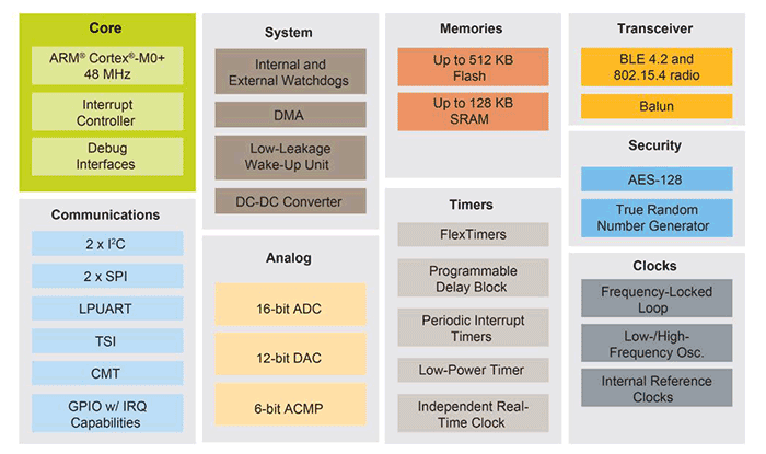 - Kinetis KW41Z MCUs supports BLE, BLE Mesh, IPv6 over BLE, Generic FSK and IEEE 802.15.4 (Thread)
