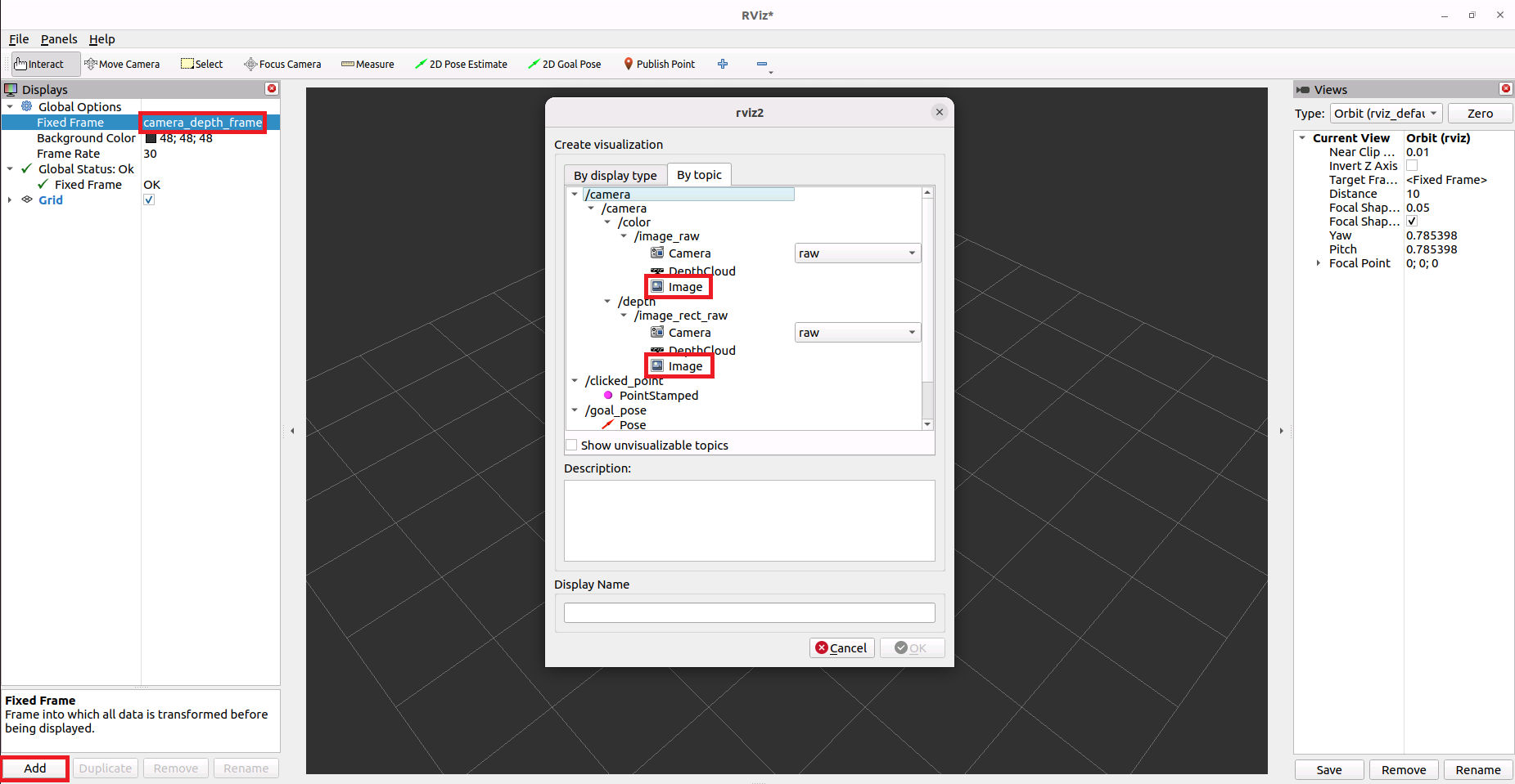 - Fixed Frameをcamera_depth_flameに変更します