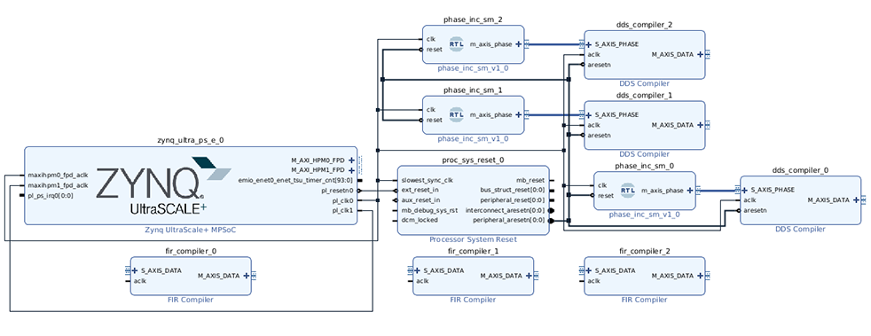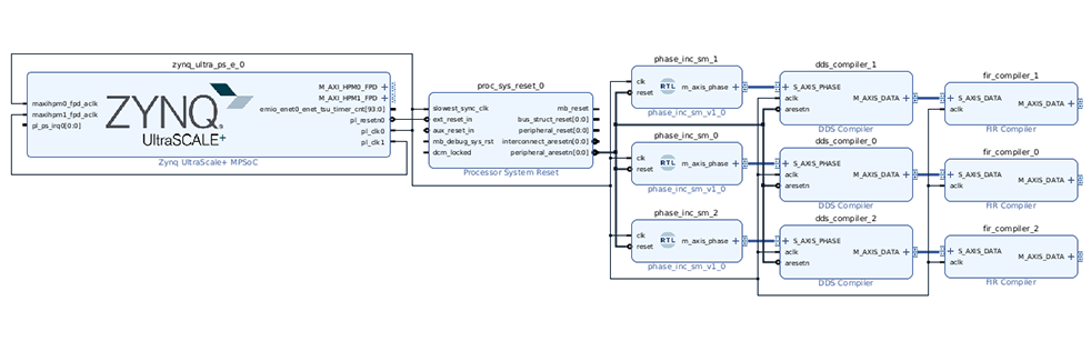 dds_compiler_0~2のM_AXIS_DATAとfir_compiler_0~2のS_AXIS_DATAを接続し、fir_compiler_0~2のaclkをpl_clk0に接続します
