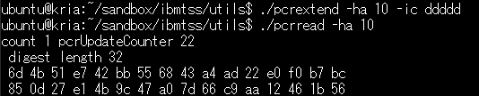 $ ./pcrextend -ha 10 -ic ddddd $ ./pcrread -ha 10