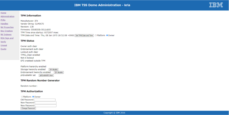 ここでは、IBM TSSからKria K26 SOMのTPM 2.0を動作させ、ブラウザでTPMの状態などを表示させるデモを行います。