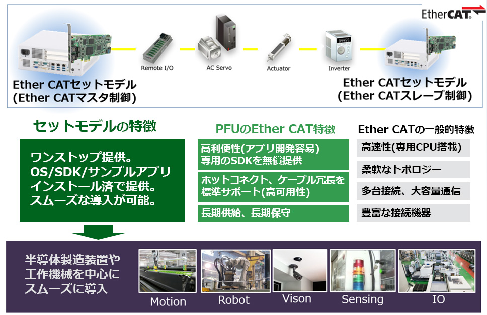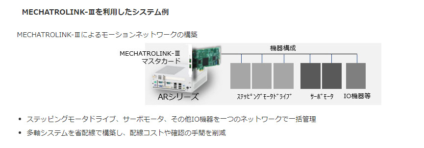 フィールドネットワークは産業用ネットワークの一部で、工場内の様々な機器の接続互換性工場を目指し仕様が標準化されオープン規格化されています。リコーPFUコンピューティングではEtherCATをはじめ、MECHTROLINK-Ⅲの拡張カードも準備し、リコーPFUコンピューティングがラインナップする高耐久、長期使用に適した産業用PC「ARシリーズ」に搭載することにより、お客様のIIoT化への取り組みにご協力させていただく事が可能です。