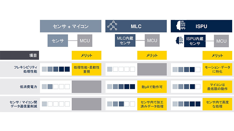STのMEMSセンサには、インテリジェント・センサ処理ユニット(ISPU)、機械学習コア(MLC)、ステート・マシン(FSM)のようなプログラム可能な機能が