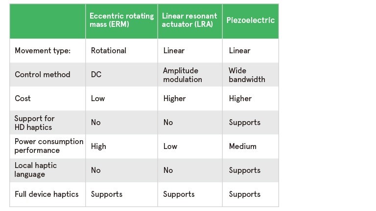 先に述べたように、触覚フィードバックを実現する最も需要な部品は、アクチュエータです。適切な触覚フィードバック・アクチュエータを選択することは、設計の重要な第1ステップです。